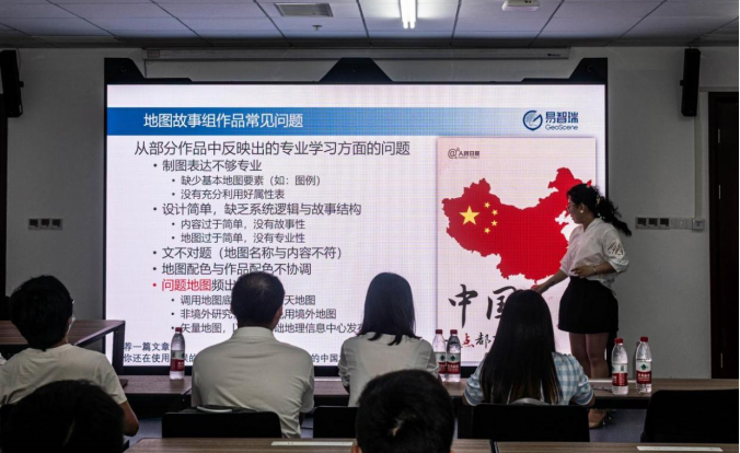“长夏风清日,檐牙燕雀飞”,6月25日下午一点,应必赢官网陈麒玉教授的邀请,易智瑞信息技术有限公司教育总监张聆女士一行四人来必赢官网访问,在学院235室与空间信息与数字技术专业的本科学子进行了一场别开生面的交流活动。